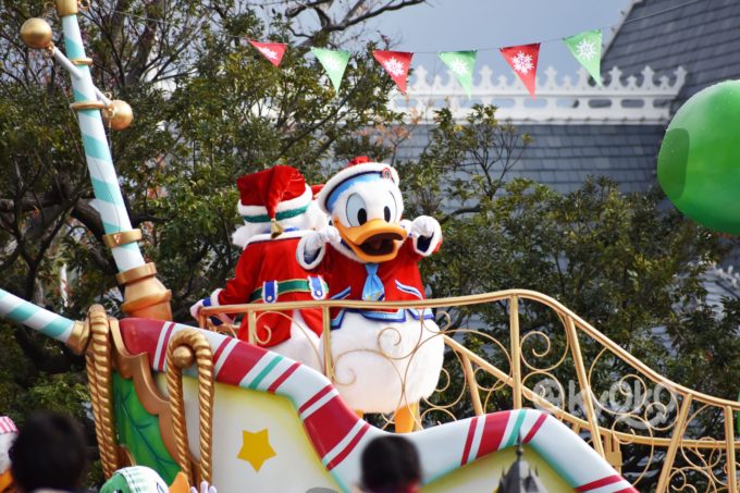 「ジャンボリミッキー!」が始まる前に、クリスマスのパレードが通過していきました。