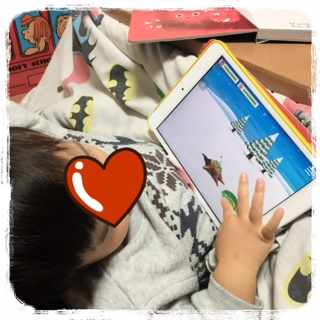 タブレットいじる姿が