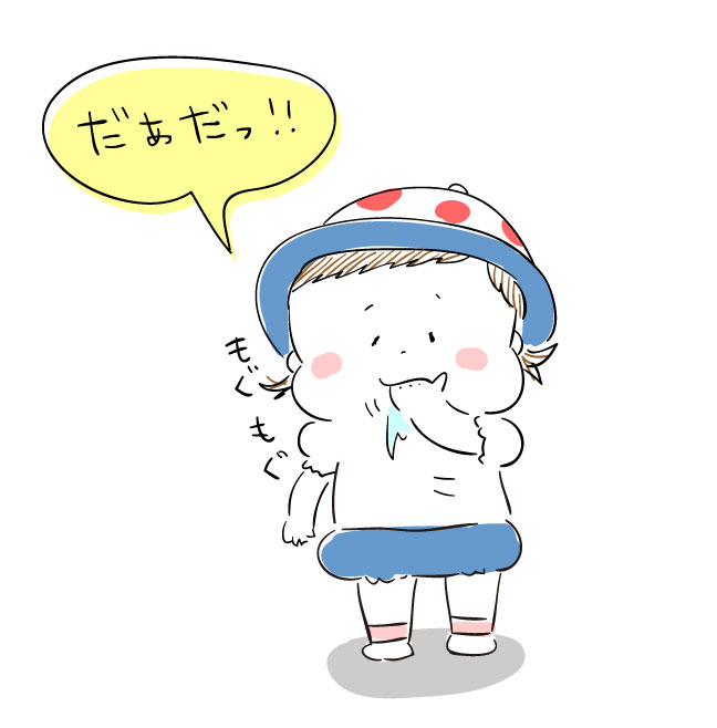 手をあごの下に持ってくるのが上手くできず口の中に入れてしまったのでした…