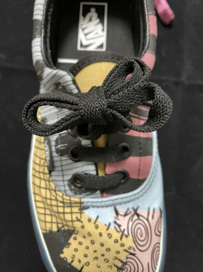 靴紐を蝶々結びにして、できる限り大きな輪にする