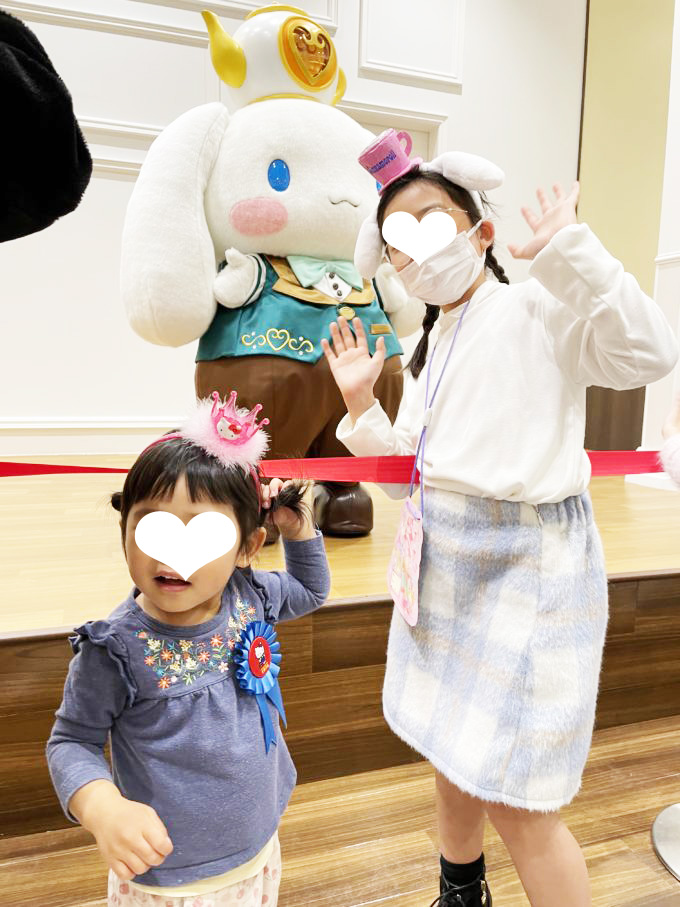 キティ、シナモロール、マイメロ、プリンの4キャラクターに会えました。