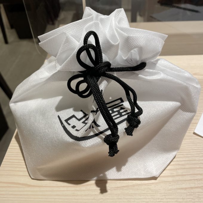 幕内弁当が白の巾着で、生姜焼き?だったかなもう一種類は黒の巾着でした。