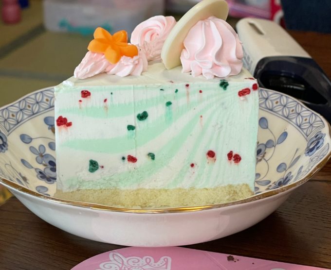 アイスケーキって切るのが大変だったんだけど、今回選んだディズニープリンセスのケーキは切れてるー!!