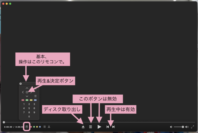 画面に映し出された「全編再生」などのボタンも同じく無効なのです。