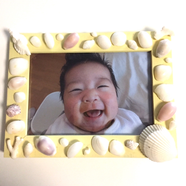 ▲ぷっぷくが産まれる前沖縄で拾ってきた貝で作ったフォトフレーム