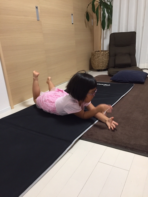 マットを引くと娘も体操をやり始める