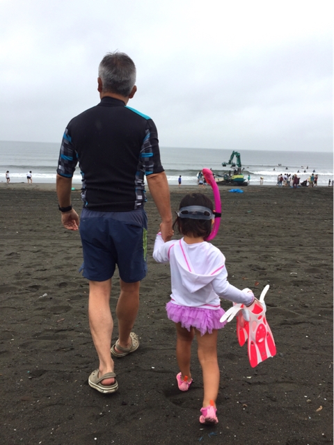 怖いの克服?!おじいちゃんとの海遊び&エイに刺された時の対処法でした