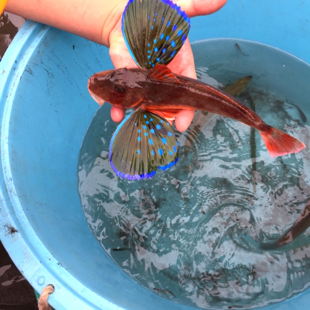 地引網近辺にいたお魚とクラゲをバケツに入れてみました!