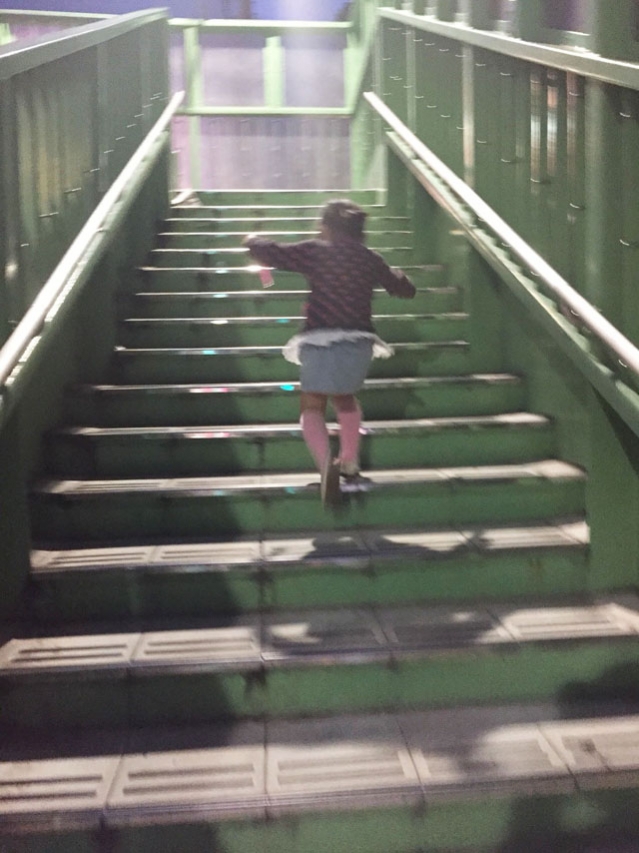 歩道橋の手すりより小さな娘も