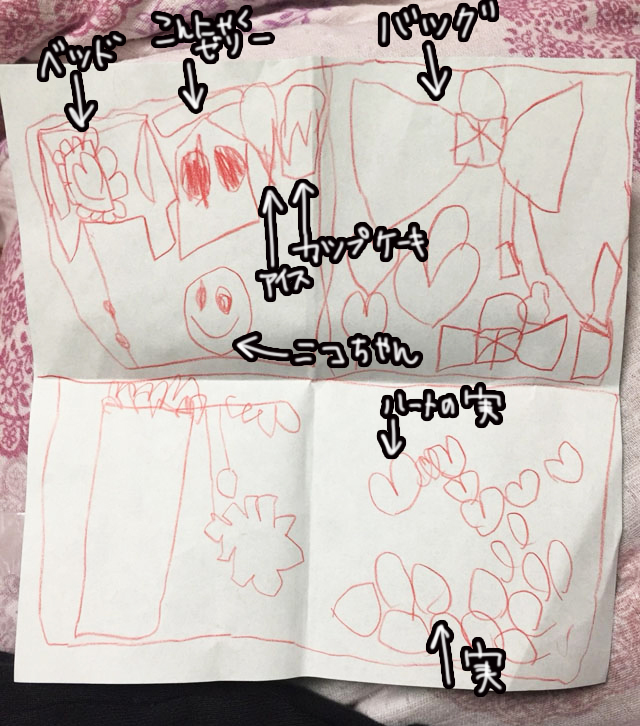 おりがみの裏にもいろいろ描いてくれた
