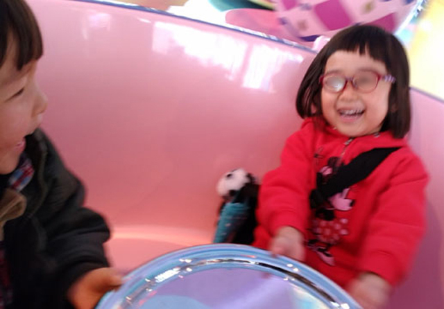 お友達ママは子供たちとティーカップに乗ってくれました