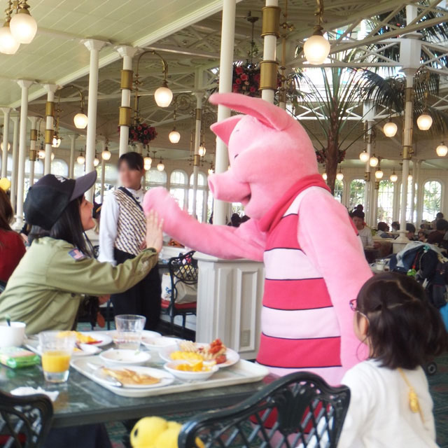 ディズニーランドのクリスタルパレスレストランは朝食時のみプーさんと仲間たちがグリーティングに来てくれます!!!(現在グリーティングは行っていません。)