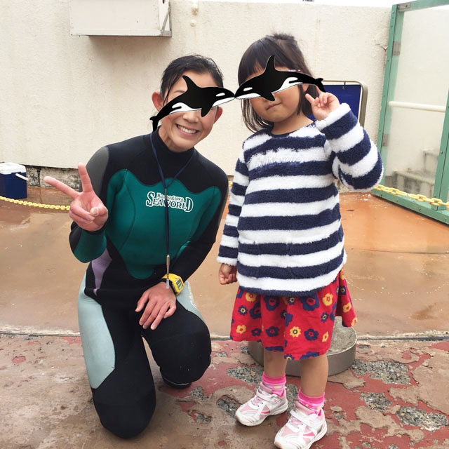 シャチとお姉さんが仲良しで