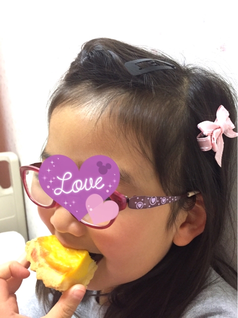 娘は早速リボン付けて、かぼちゃのタルトを頬張ってました