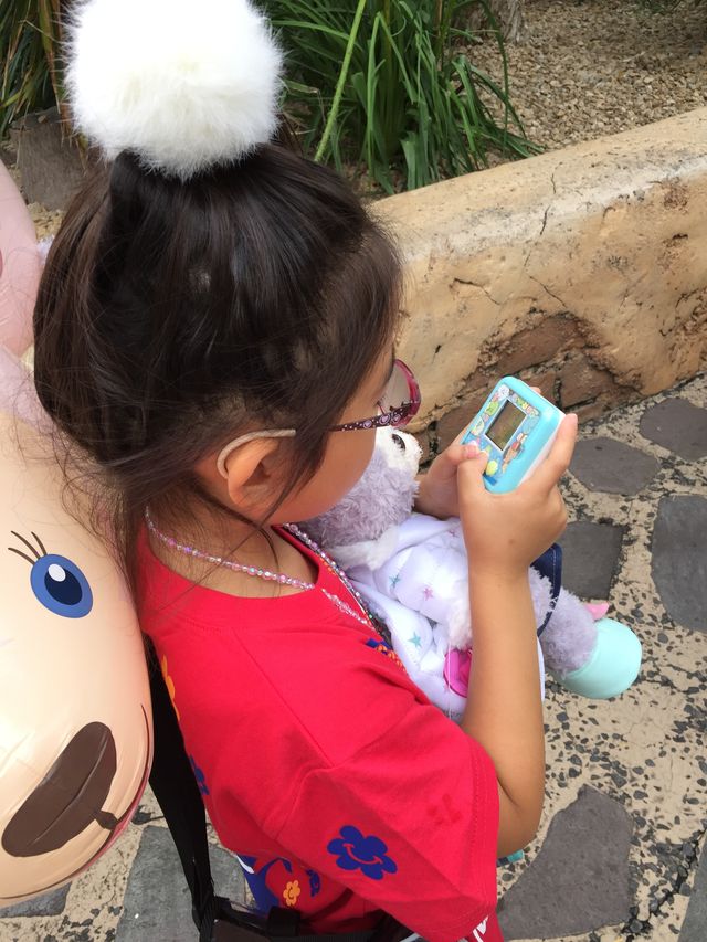 持参したすみっコあつめで遊び始める娘。