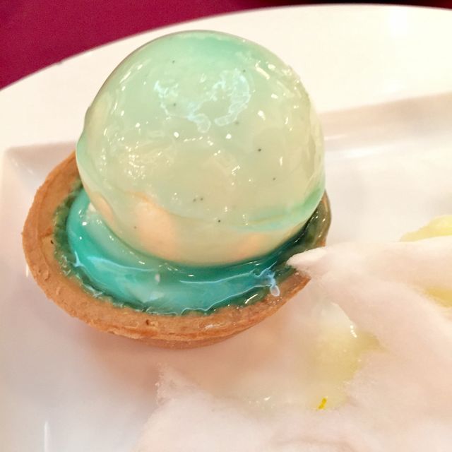でも球体のバニラムースにかかっているブルーソースはレモン風味で…